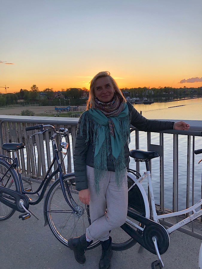 На велосипеде каталась, что бы чем то другим заняться. Поймали с дочкой на мосту закат солнца. Красота и спокойствие. Со мной Волшебный узор.