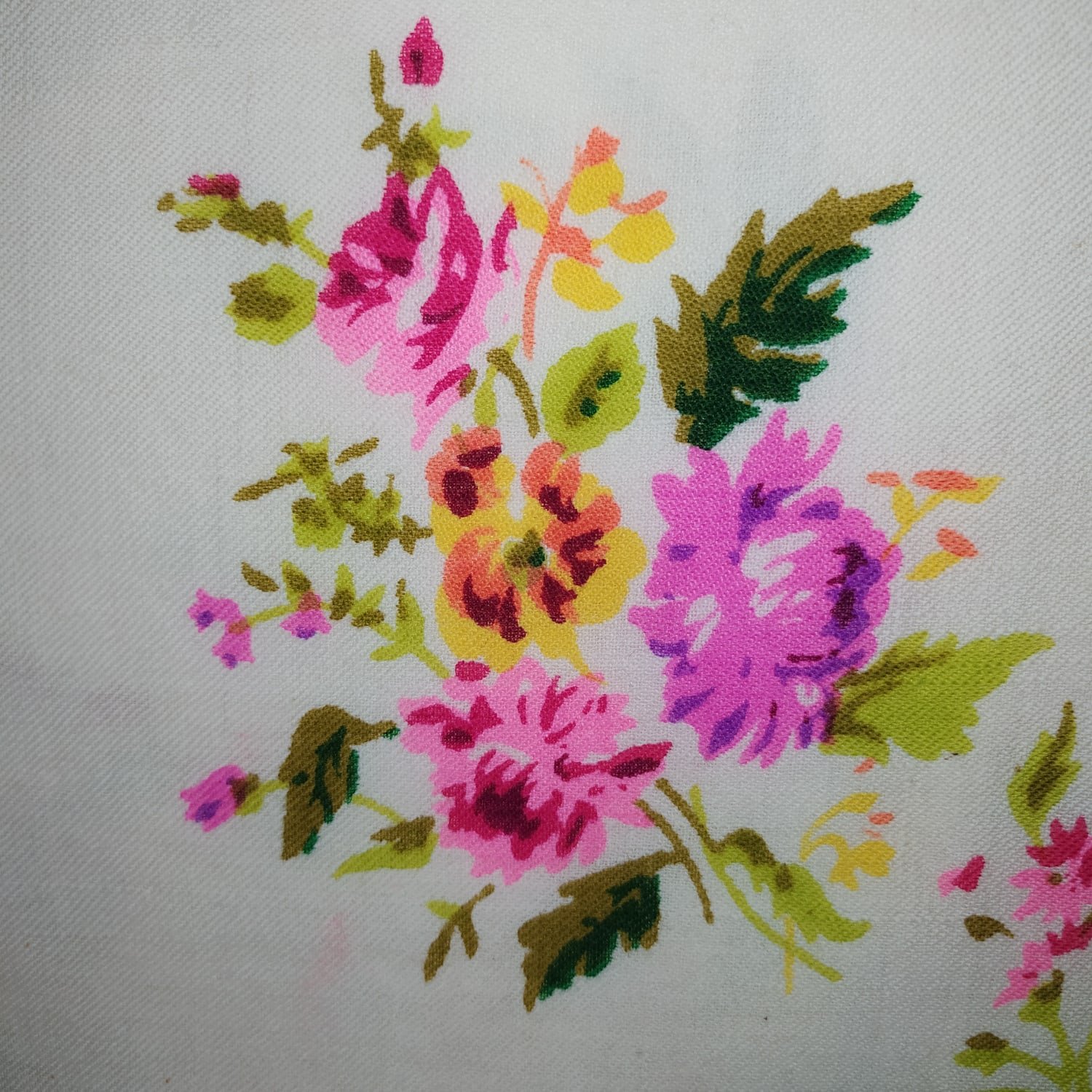 Я увлеклась датировкой платков по ярлыкам, принтам и печати логотипа в рисунке. Вот на моем нет никаких опознавательных знаков. Для вшивного ярлычка, видимо, он появился рано, а для печати в поле - поздно.