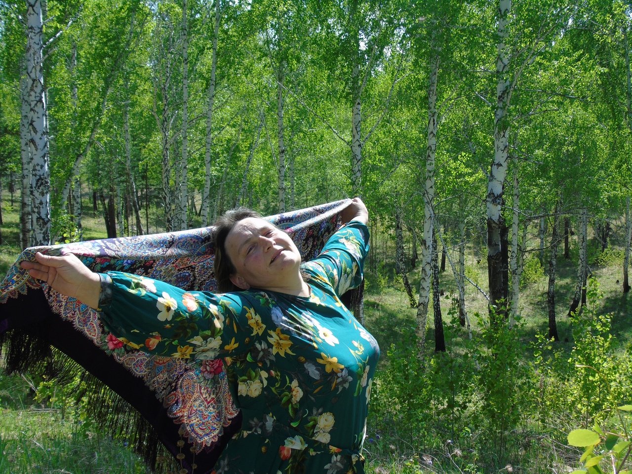 Nathalie О, как здорово с шалью на голове! Черноокая дива 8-) ^% За листочки и цветочки особенное спасибо, в Москве в этом году летняя зима и зимняя весна, и не дождешься лесных красот...