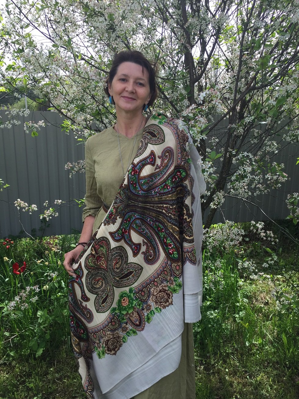 Платье у тебя это волшебное - очень тебе идет и под любой платок...надо что-то подобное сшить, ага.