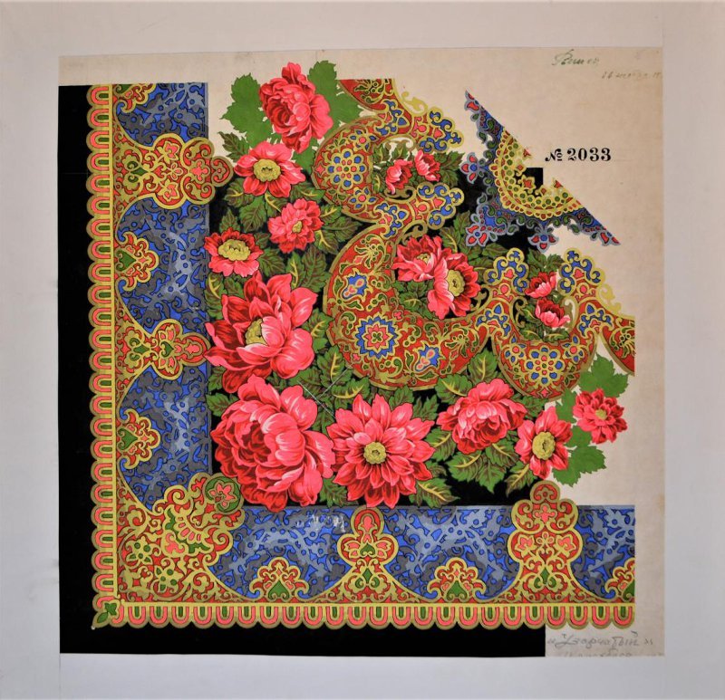 Эскиз платка "Узорчатый" № 2033 1/4 часть Период создания: