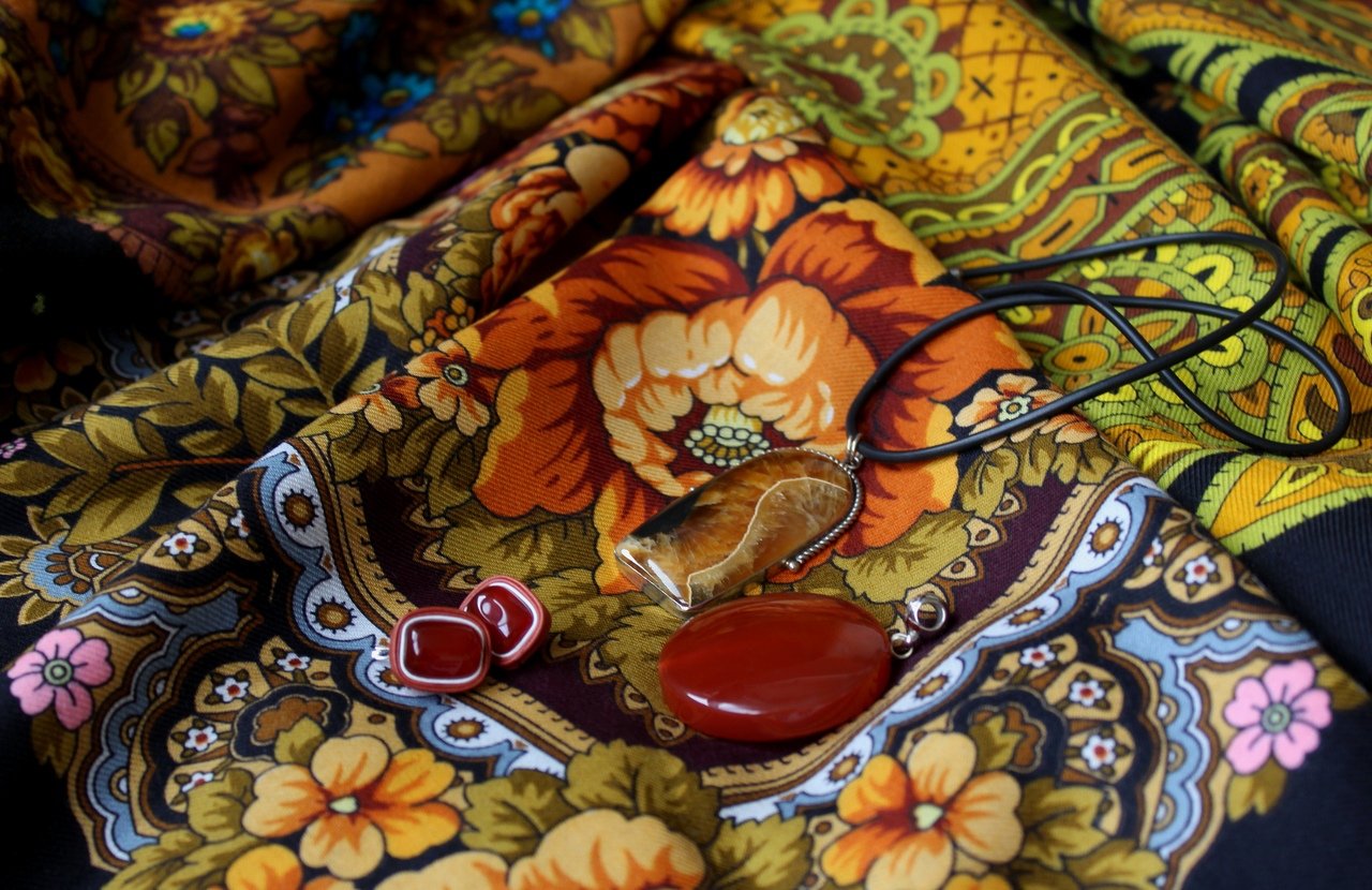 "Кайма расписная" 316-19, Клара Зиновьева, "Печатный пряник" 356-20 Елена Жукова, "Боярыня" 334-24 Ирина Дадонова, сердолик, симбирцит