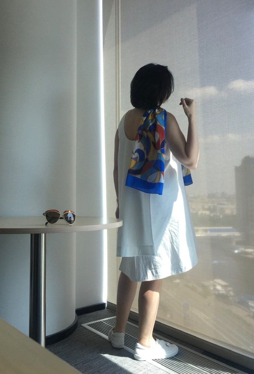 Наталь,спасибо за калейдоскоп летних образов с шелком. Особенно покорили сине- белые варианты. Освежают в жару.