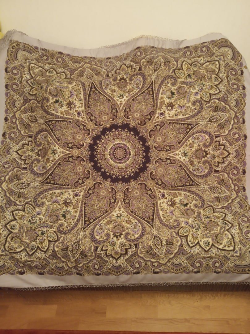 Первый платочек купила вискозный Пасьянс 9. Ну очень приятный к телу и не жаркий , но маловат. Сейчас жарко в шерстяных , особенно в магазинах. Напечатайте , пожалуйста , вискозные Арагонский и Фергана . Когда фабрика , конечно , начнет работу. Ещё все Пасьянсы. Спасибо художнику и работникам за такую красоту. Вот прям не хватает такого мелкого рисунка и расцветок в 135 вискозных , как Пасьянс . Уважаемая Елена Жукова , нарисуйте , пожалуйста . Хочется что то , как Пасьянс или Рождественский пряник на вискозе 135.