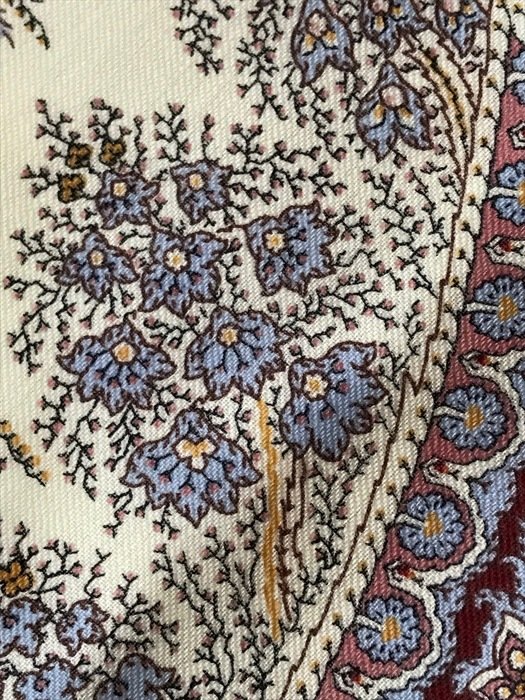 "Сувенир"-16. Удачно подошел к одной из сумок, но и сам по себе самодостаточен и очень красив. Удивилась, как это раньше я не обращала внимания на него. Фон не белый, очень светлый желтовато-белый. Кайма цвета пыльной розы с карамелью или розовая, светлая терракота. Бахрома--идеально подходит к кайме. Рисунок сказочный!...Узоры лиловые, сиреневатые -голубоватые, без розового и бирюзы. Но фото кажутся припыленными , сероватыми, в реальности-яркие оттенки, звонкие.Голубого в чистом виде нет.