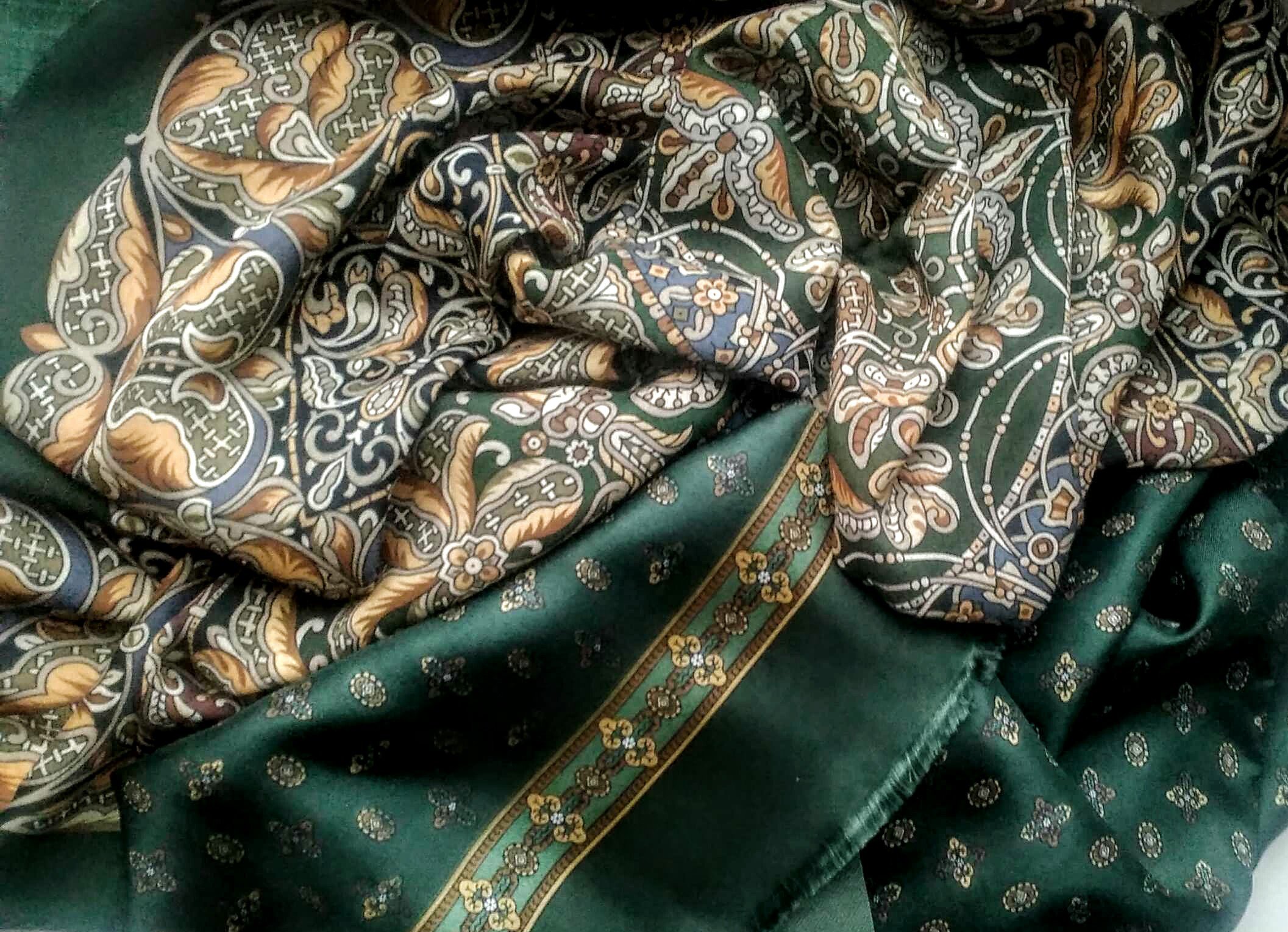 Пополню ещё зелёную тему. Милейшая новинка платочек Пасьянс, вискоза 80см и снятый распродажный мужской шарфик Герцог, оба изделия 9 колорита, худ Е.Жукова. Шарф в жизни менее зелёный, чуть в хаки. Парочкой смотрятся красиво!