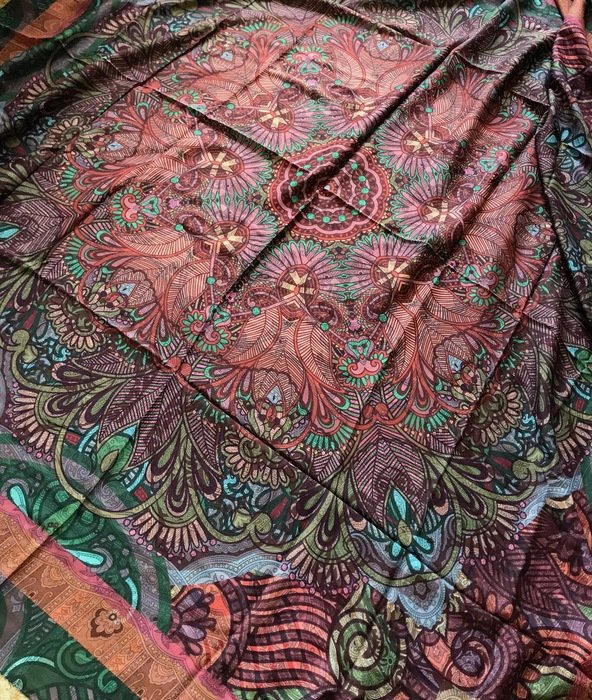 Мне платок понравился. При всей "сложности" расцветки смотрится вполне повседневным и универсальным в плане гардероба.