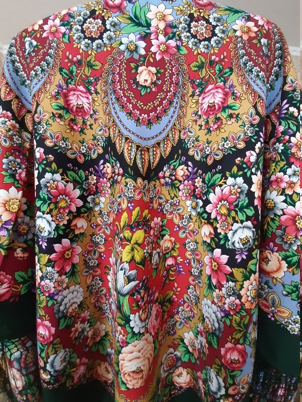 Спасибо Вам за фото! Вертела я в магазине этот колорит Души розы и так и эдак! Показалась яркой, ядовитой, особенно весенняя зелень--то ли освещение сыграло роль. Это шаль очень понравилась моему супругу, но я засомневалась...может быть --зря? Вот, у Вас на фото она спокойная и фон зелени достаточно темный.