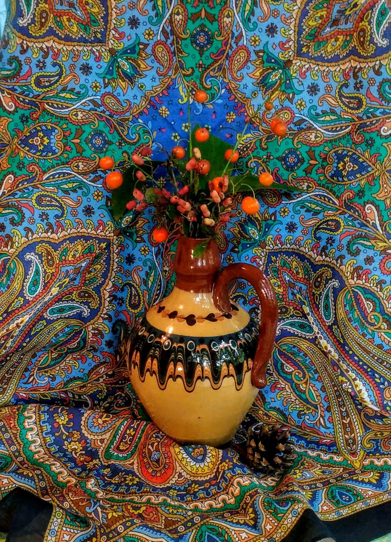 Замечательно. Такое слияние цветов и шали.