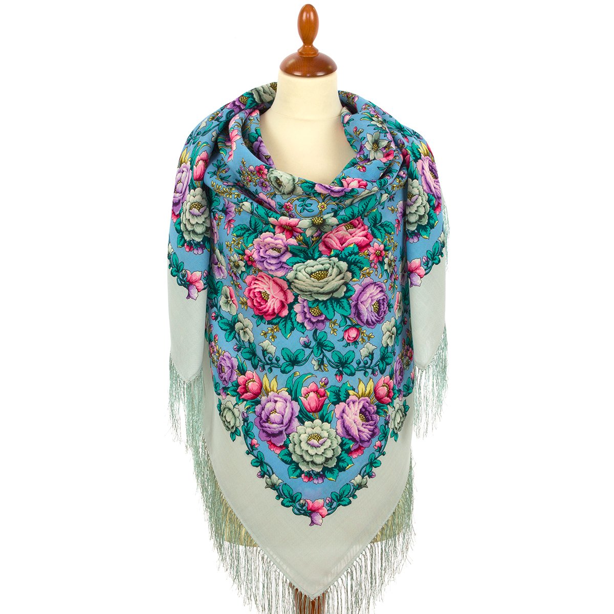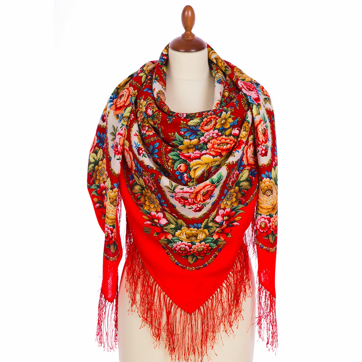 Платок шерстяной с шелковой бахромой, 146x146 см