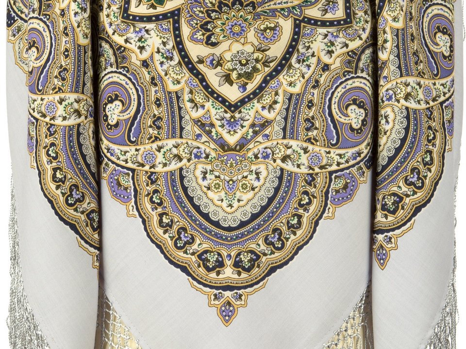 Платок шерстяной с шелковой бахромой, 146x146 см.