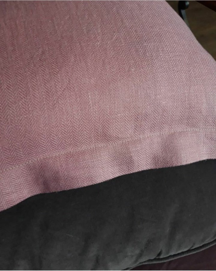 Лён, но с интересной фактурой "елочки". Меня подкупило сочетание фактуры с винтажно-розовым цветом, элегантно выглядит.
