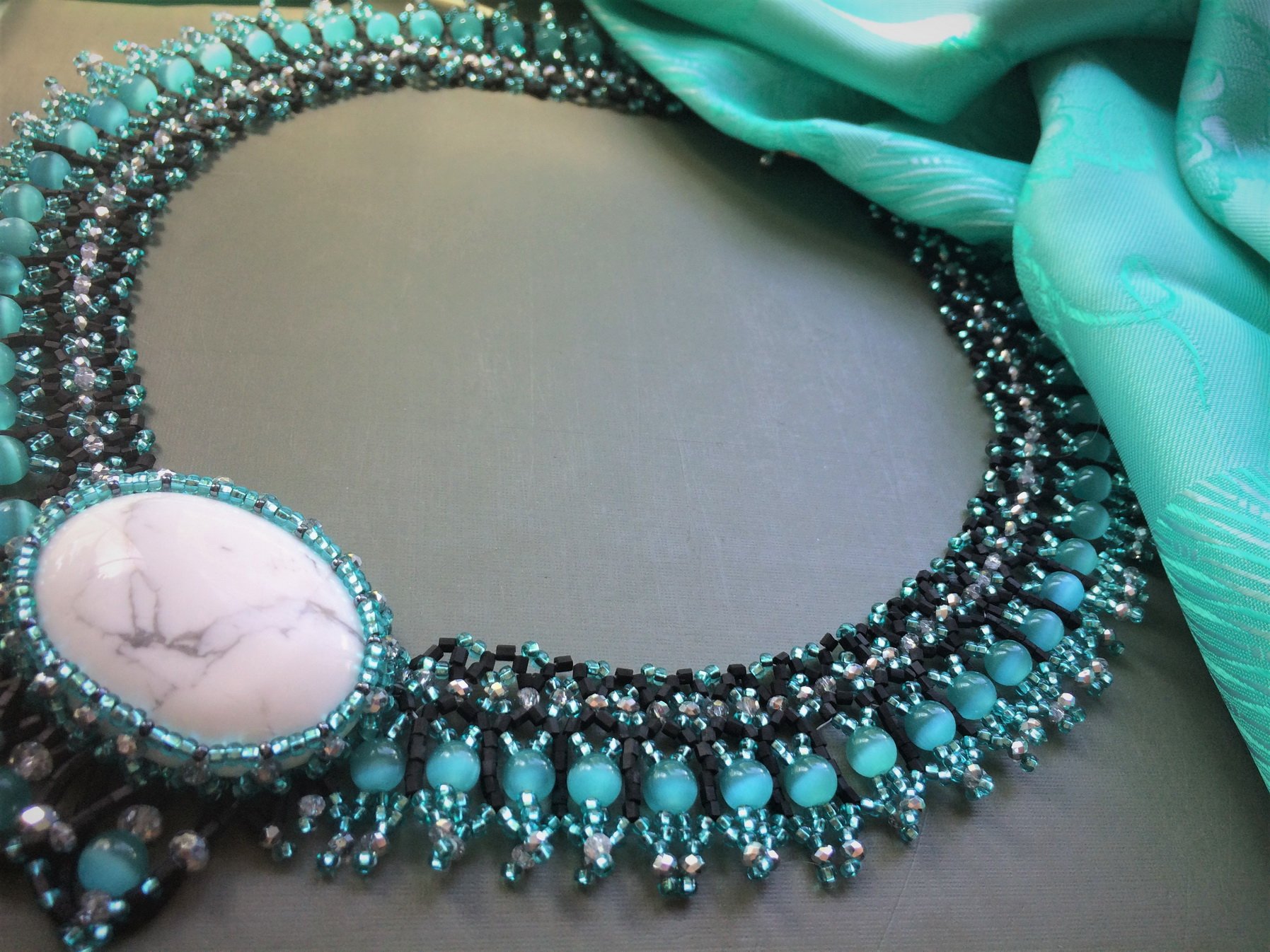 Зарина, какой у вас творческий июль! Очень красивые колье и прекрасная гармония с платком.