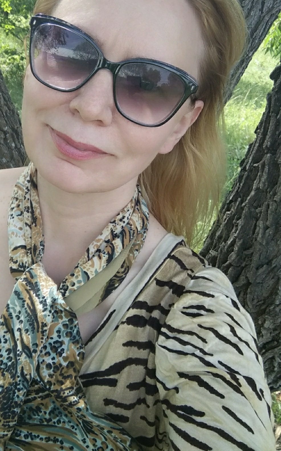 Сегодня на Малом П. С. купила шарфик "Кошачий глаз", на белом фоне рисунок.