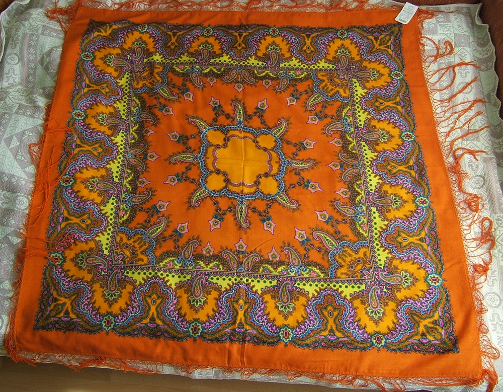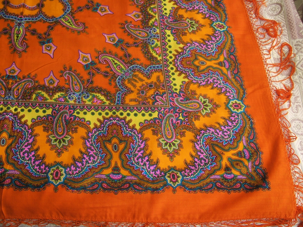 Вот ещё один платок. Куплен в начале 90-х. Бахрома шерстяная.