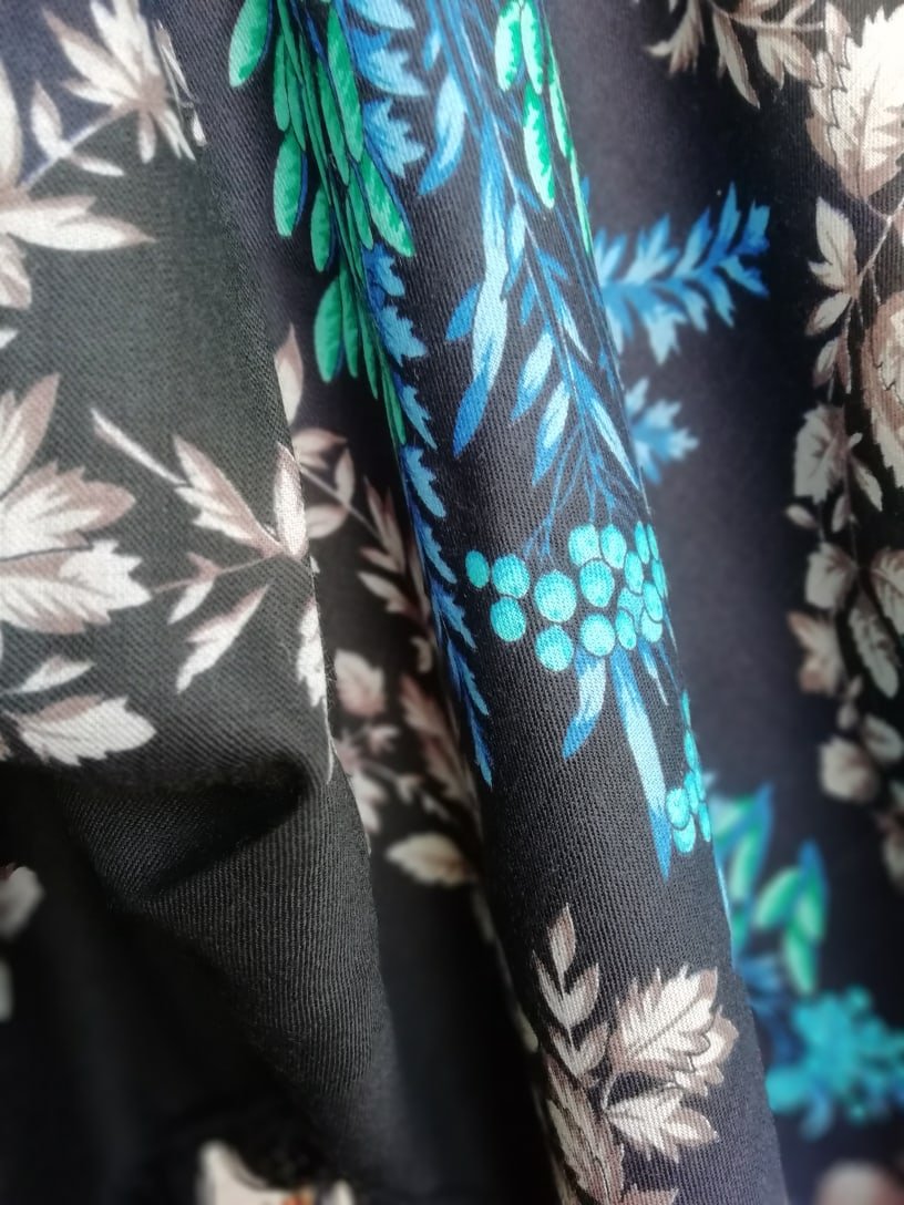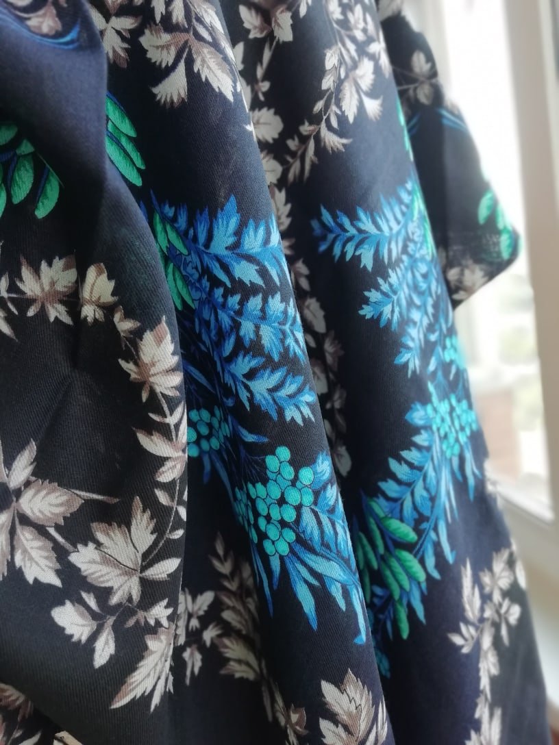 Получила я свою Рябину - 19. Ёлы-палы, она реально еще темнее, чем 27-я. Она просто черная-ченющая. Бордово-аметистовая полоса, считай что тоже черная.И самое обидное, что гирлянды бежевых листиков по активности забивают фиолетовые веточки. С скрутке получается просто черный платок с бежевыми пятнами листочков.