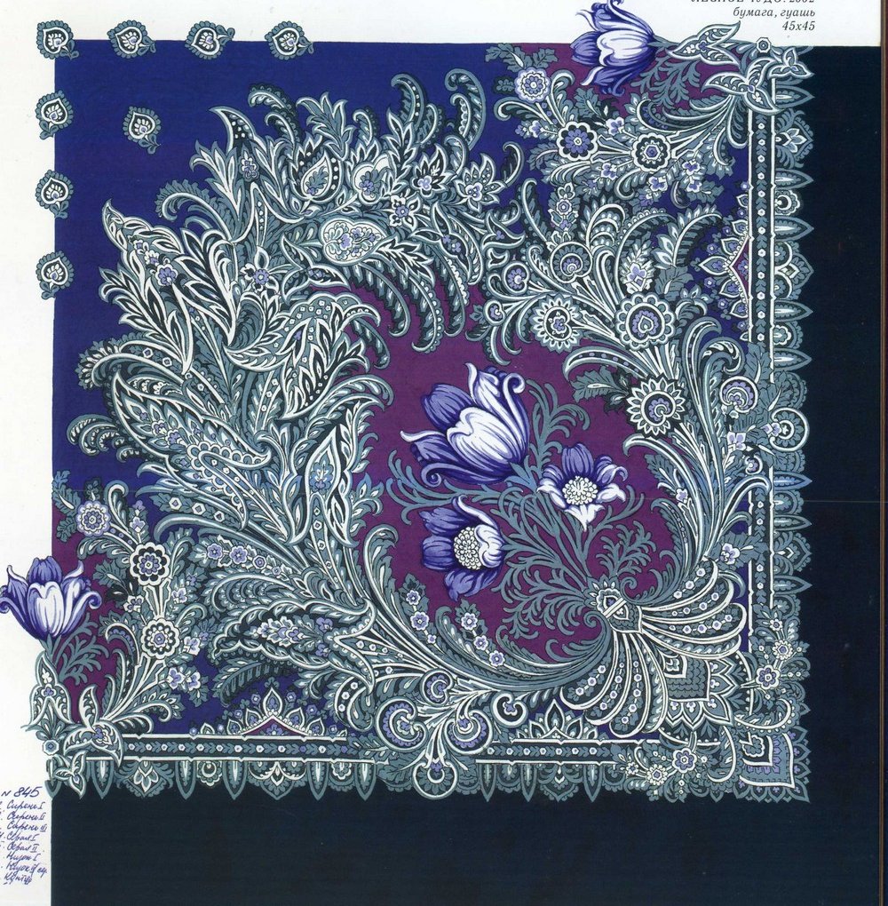 Авторский крок платка "Бархатный" Т.П. Сухаревской. Фотография крока дана в разворот, но я смогла отсканировать его только двумя половинками.