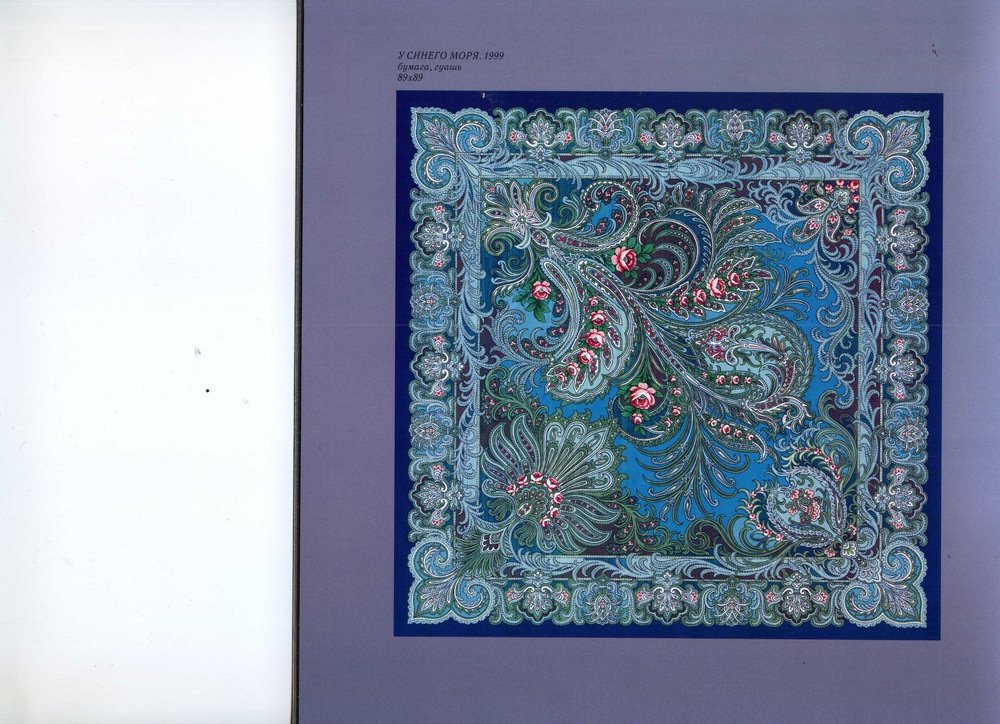 Последняя страничка с кроком платка "Над серебряной водой", 1999 г., бумага, гуашь, 74х74
