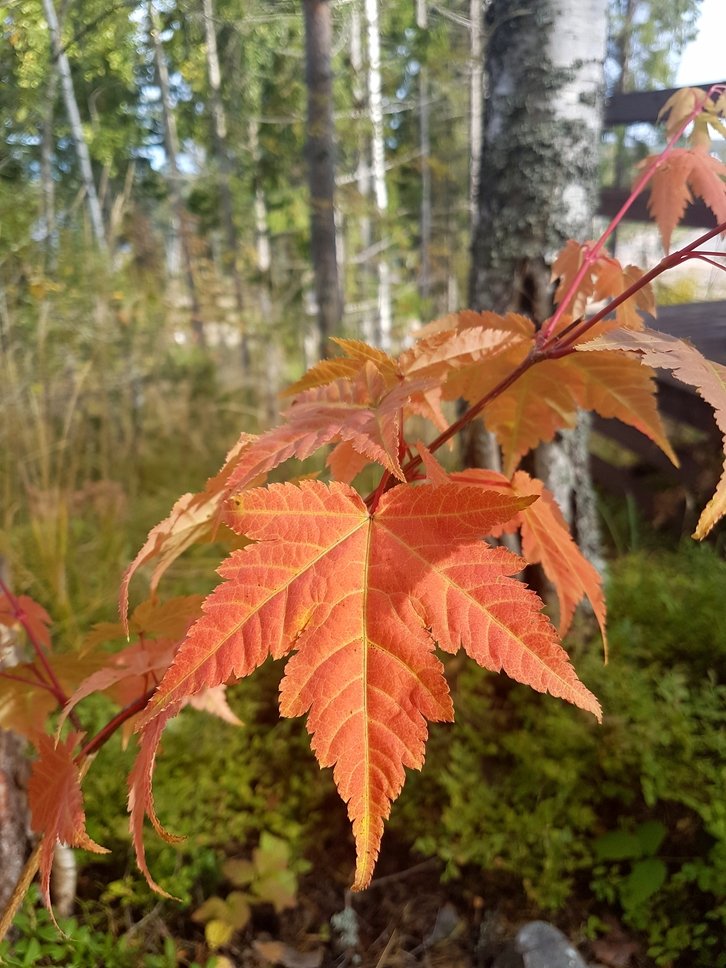 Мой питомец, посаженный два года назад совсем тоненькой былиночкой, - дальневосточный клёник. Он и сейчас ещё малыш (голубика растёт сама))