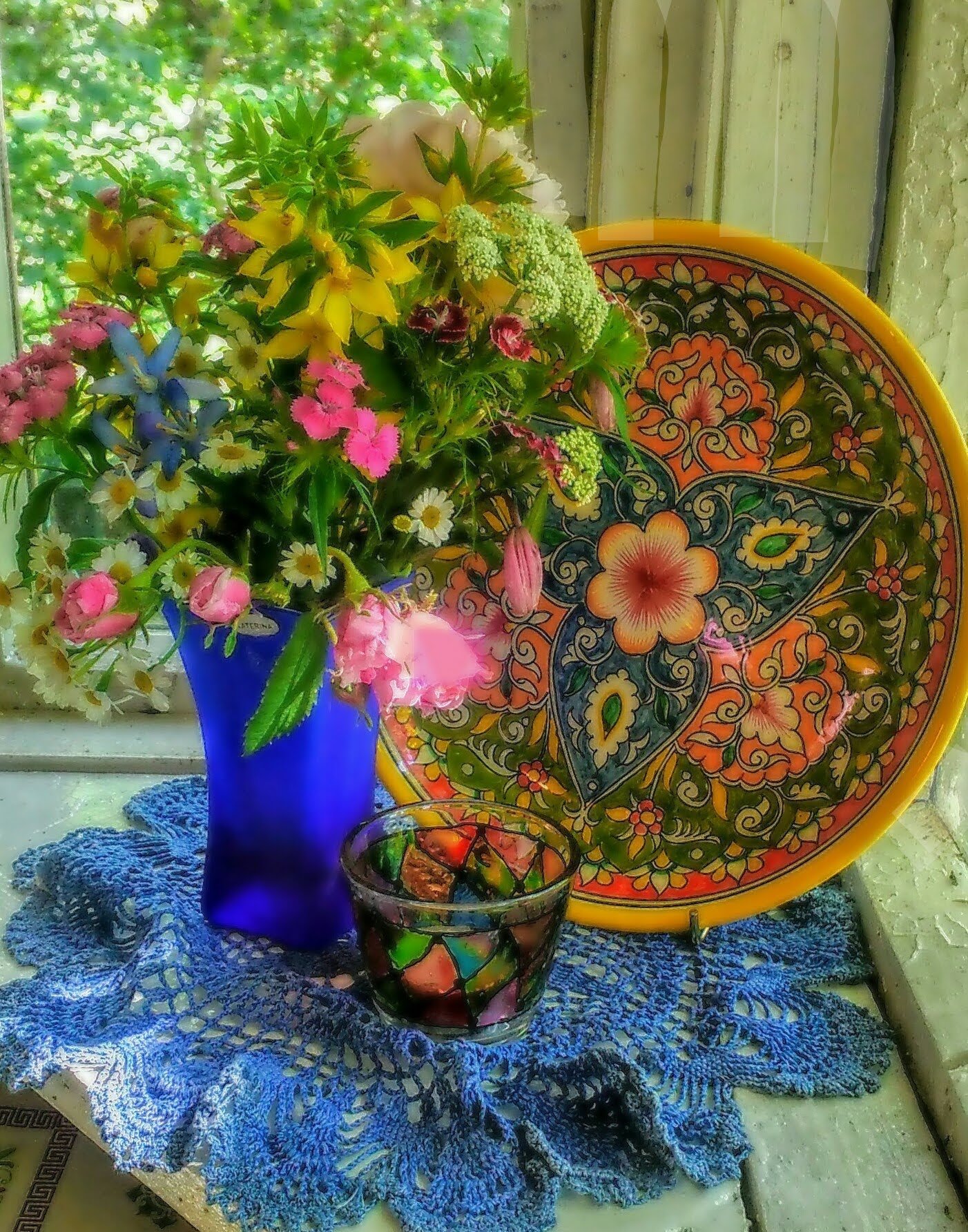 ЕленА, лютики-одуванчики- мёд- чудесная тарелка- лето на столе, стол- в цветущем саду. Вот это жизнь!