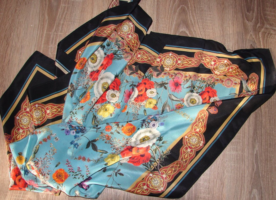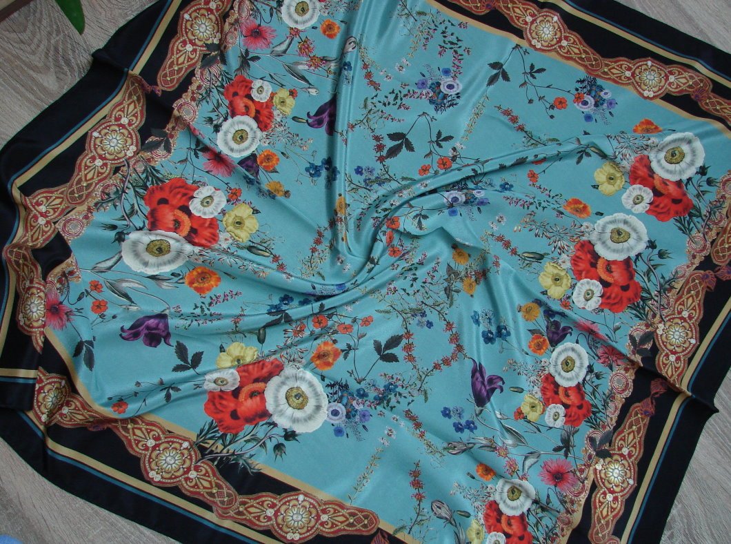 Принесла фотографии крепдешинового платочка в размере 89 см №10127-18, проект "Палитра". Дата на этикетке 21.09.16г.