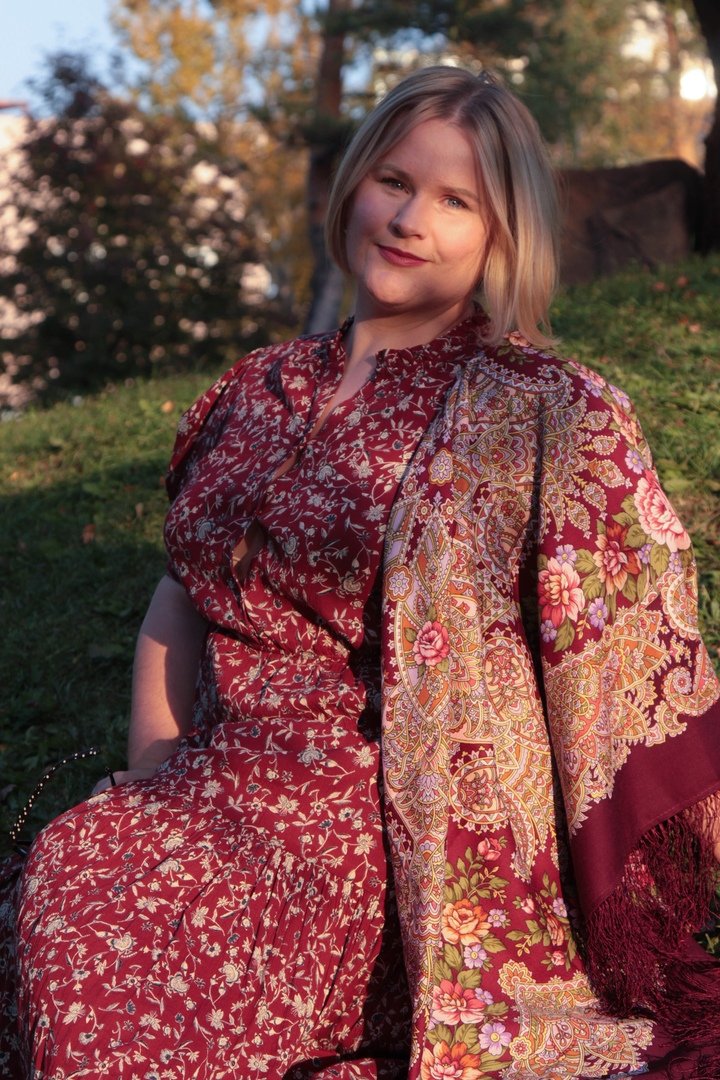 Под чудесное платье Лены подошли все платки