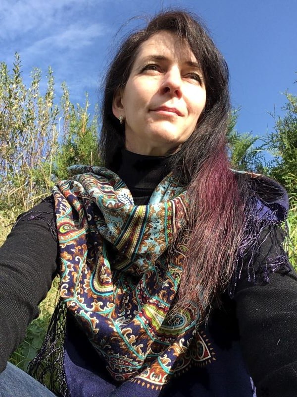...а у меня сегодня свежее селфи. На этот раз с самым колдовским платочком - Бархатной ночью. Очень ей идет осеннее разнотравье!