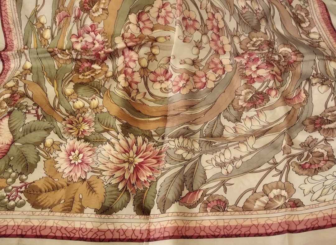 И на платке "Костры осени-16"серо-сиреневый дым...