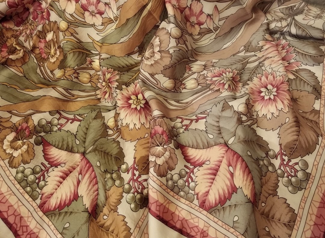 И на платке "Костры осени-16"серо-сиреневый дым...