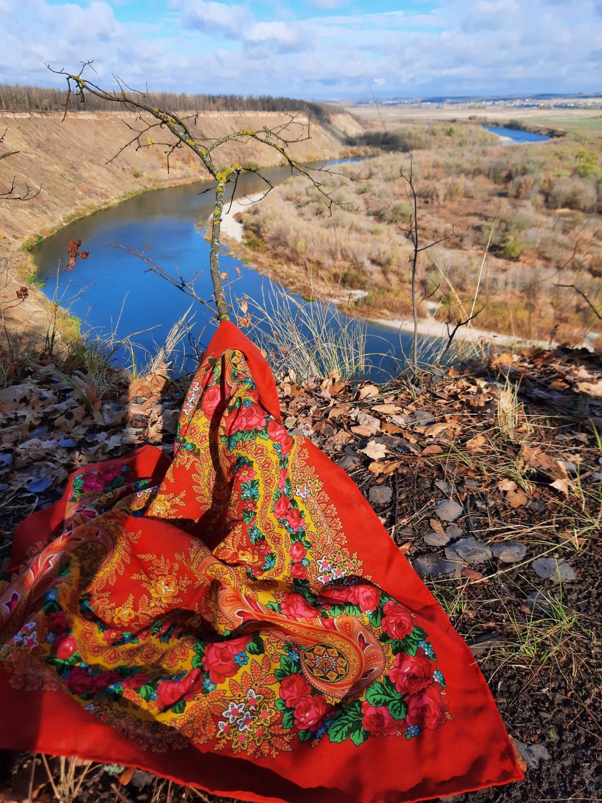 Вывозила платки подышать донским воздухом и пофотографировать заодно. Ветер мне не просто мешал, а вот так: МЕШАЛ! Норовил сдуть платочки прямо в Дон с пятидесятиметрового обрыва. Посмотрела внимательней на фото: получилось неоднозначно.