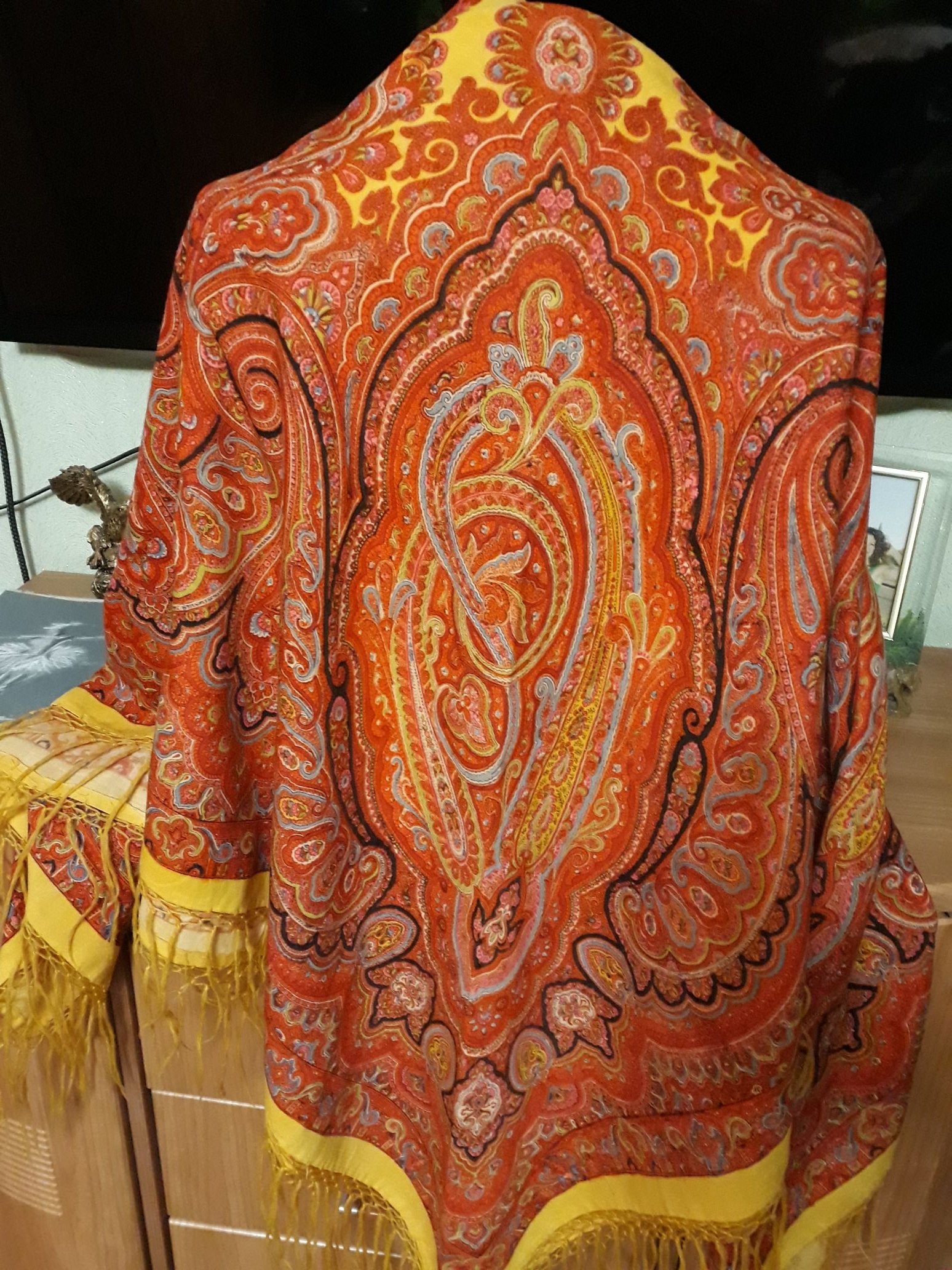 Здравствуйте!помогите пожалуйста опознать,хлопковая шаль,размер где-то 150×150 ,вроде ручная набойка