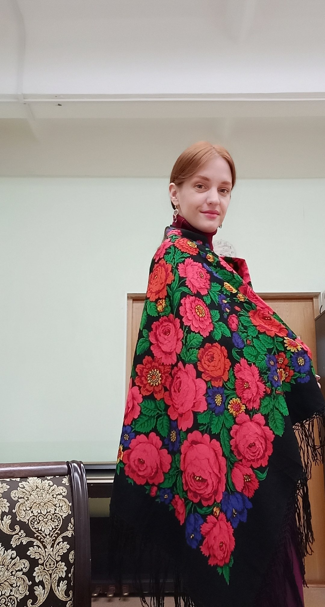 Демонстрируем ношение платков и шалей.