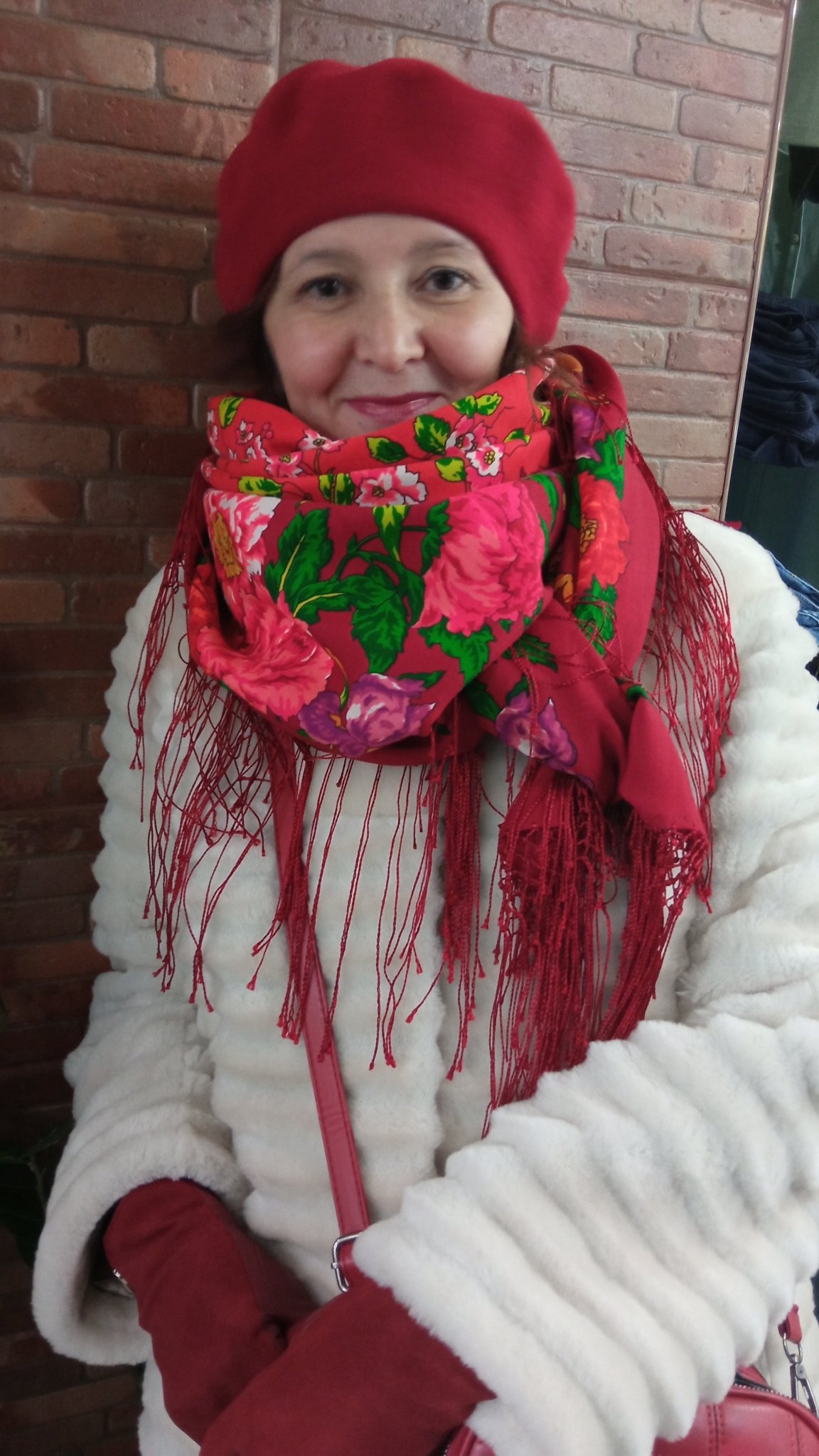 Зиния, как же Вам идут шали, но яркие - особенно! Помню, когда выбирала себе самую первую шаль, среди претендентов на эту особую роль была Аза, но я взяла тогда другой платок. Азу - побоялась, и до сих пор боюсь. На Вас она великолепна! Глаз не отвести!