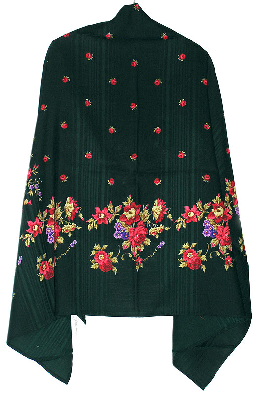 Очень интересно смотрится 932-10 ("Цветочное ожерелье", автора опять же не знаю). Мне, кстати, восстановленные платки на таком фоне ни разу не встречались. А у меня этот такой рисунок на темно-претемно-зеленом фоне (почти черном).