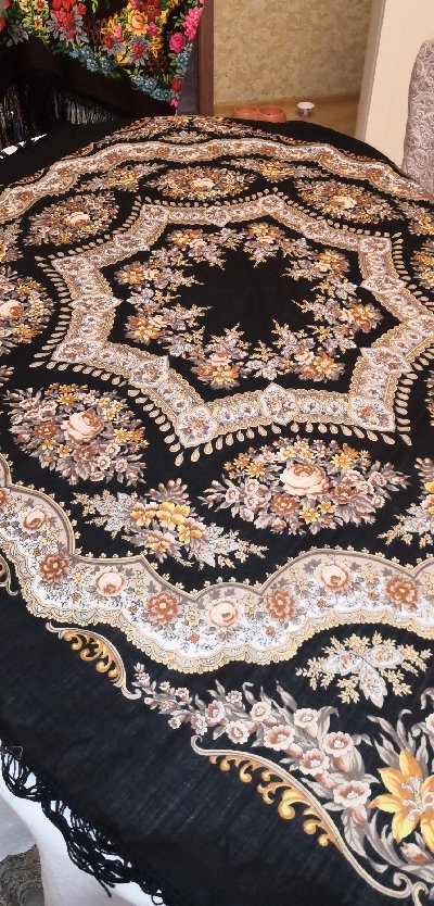 Юля, да, и, пожалуй, в таких тонах платка ещё не было. Очень деликатная и мягкая, сближенная гамма цветов. Печать чёткая, да ещё и на чёрном фоне, так что разговоры о его бледности, на мой взгляд- преувеличение.