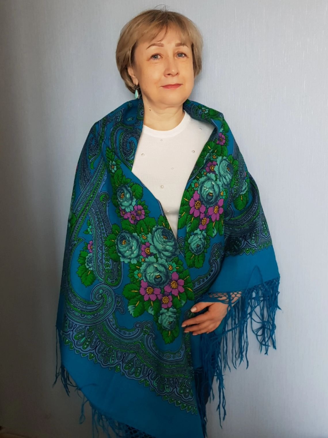Фрекен-Юля, мне все шали понравились на Вас, в тройке такие нежные розы.