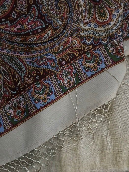 Что-то у меня уже нет надежды на чёрную, без цветных вставок по полю, орнаментальную шаль. Да и по-настоящему коричневой, нарядной тоже, видимо, не будет.