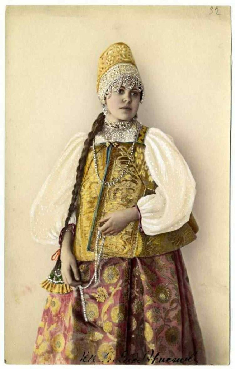 И картинку,конечно) Раскрашенное фото одного из подлинных костюмов коллекции Н.Л.Шабельской.
