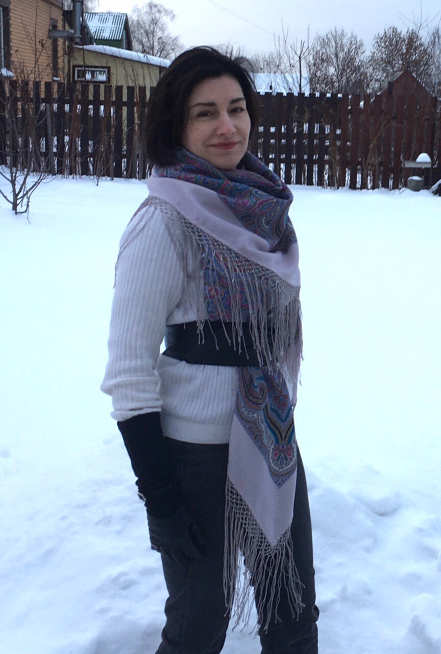 В небольшой спортивный заход в лес платок этот прямо попросился. Возьми меня, говорит. Смотри, какой я волшебный! А то может в лесу снега и не будет, а я -выручу. А мы лыжи новые пошли испытывать)) А он - вдруг снега не будет))