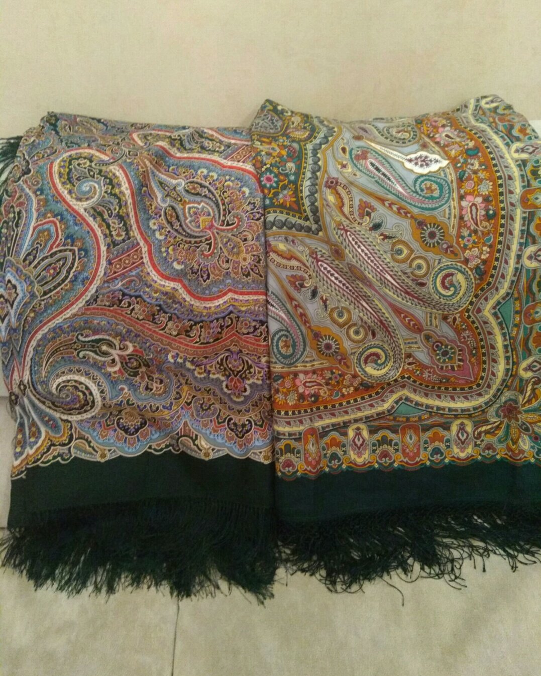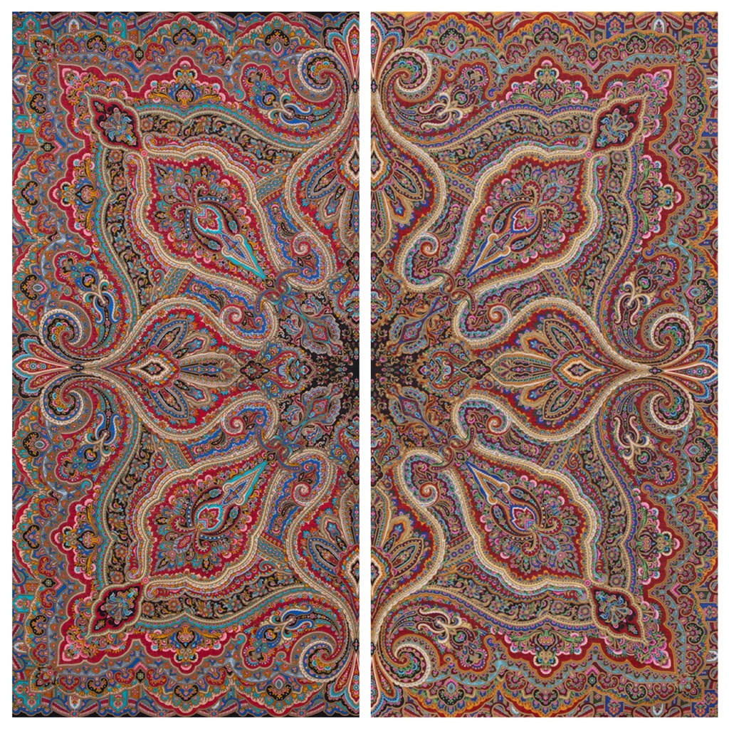 Согласна! Платки разные, оба хороши, но на мой взгляд, "Мчится тройка=12" нежнее. Смотрите сами.