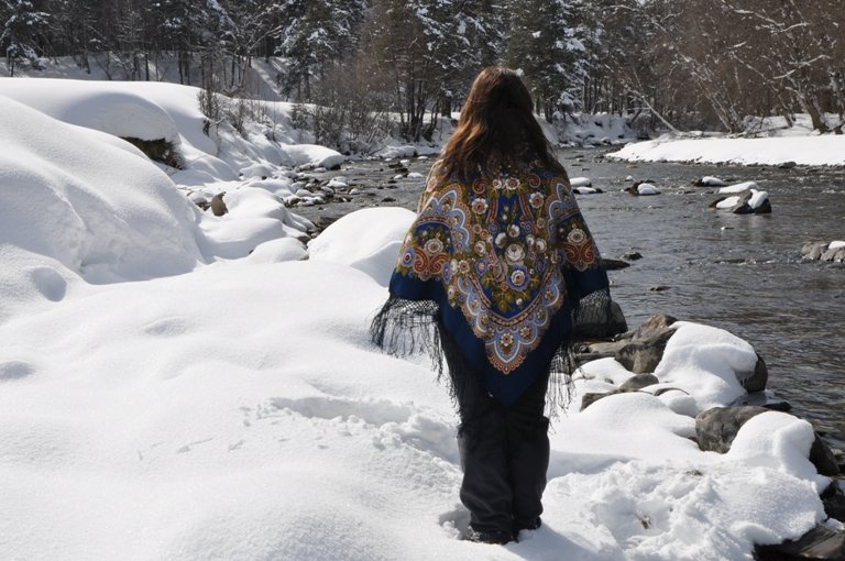 Единственная "темная" шаль, которую я ношу на голове и она не портит ни цвет лица, ни мое настроение )))