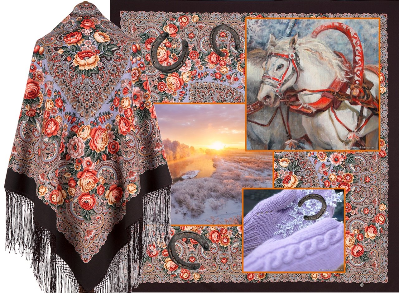 и две рядышком 14 и 17 колорит шали Мчится тройка.