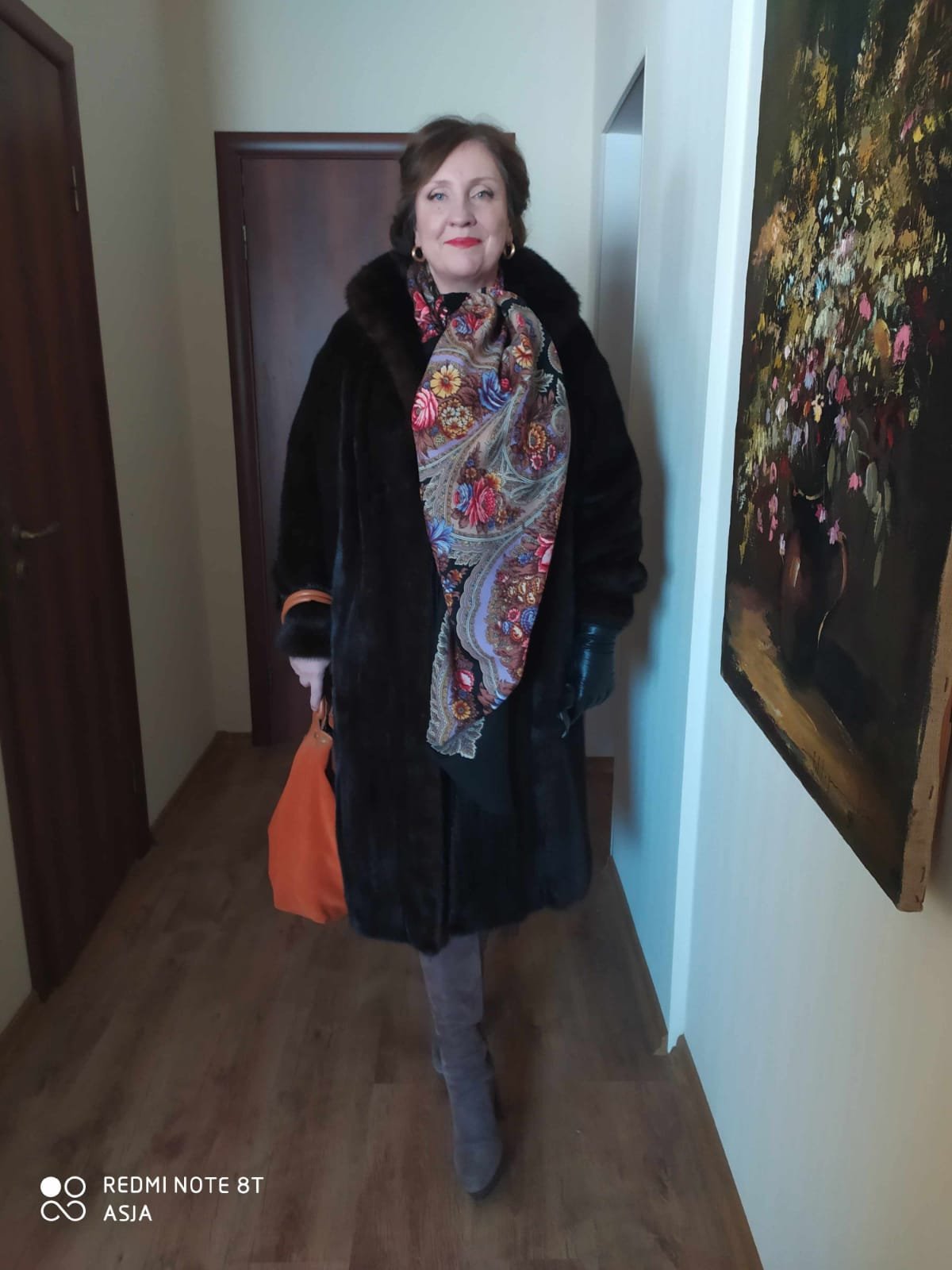 Дорогие дамы,я иногда осмеливаюсь любить и носить что-то ...неочевидно мое. Не знаю,насколько она мне идет.Но знаю,что очень ее люблю. Домашние тоже,как ни странно,к ней неравнодушны. А еще она теплейшая из моих,в крещенские морозы очень надежно согревает,правда,драпируется скажем...упруго ,что ее не портит в моих глазах) Нина Александровна,на контрасте с вашим мягчайшим,-мой почти смелый платок )