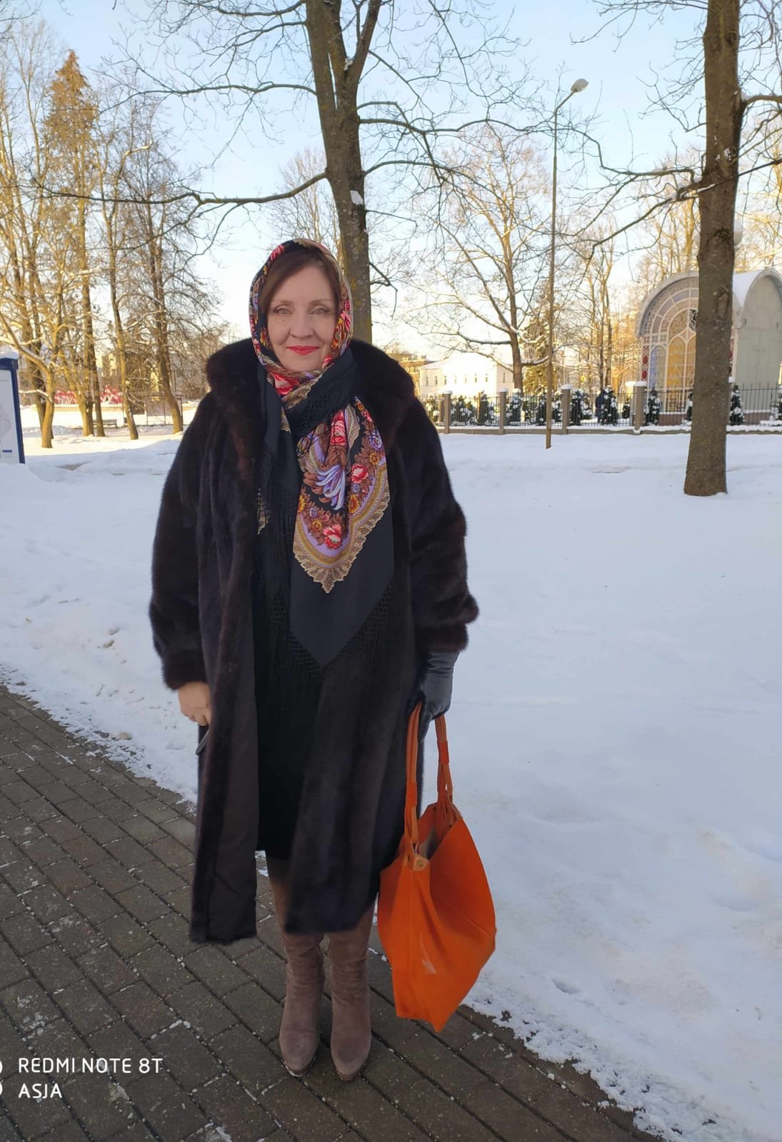 Дорогие дамы,я иногда осмеливаюсь любить и носить что-то ...неочевидно мое. Не знаю,насколько она мне идет.Но знаю,что очень ее люблю. Домашние тоже,как ни странно,к ней неравнодушны. А еще она теплейшая из моих,в крещенские морозы очень надежно согревает,правда,драпируется скажем...упруго ,что ее не портит в моих глазах) Нина Александровна,на контрасте с вашим мягчайшим,-мой почти смелый платок )
