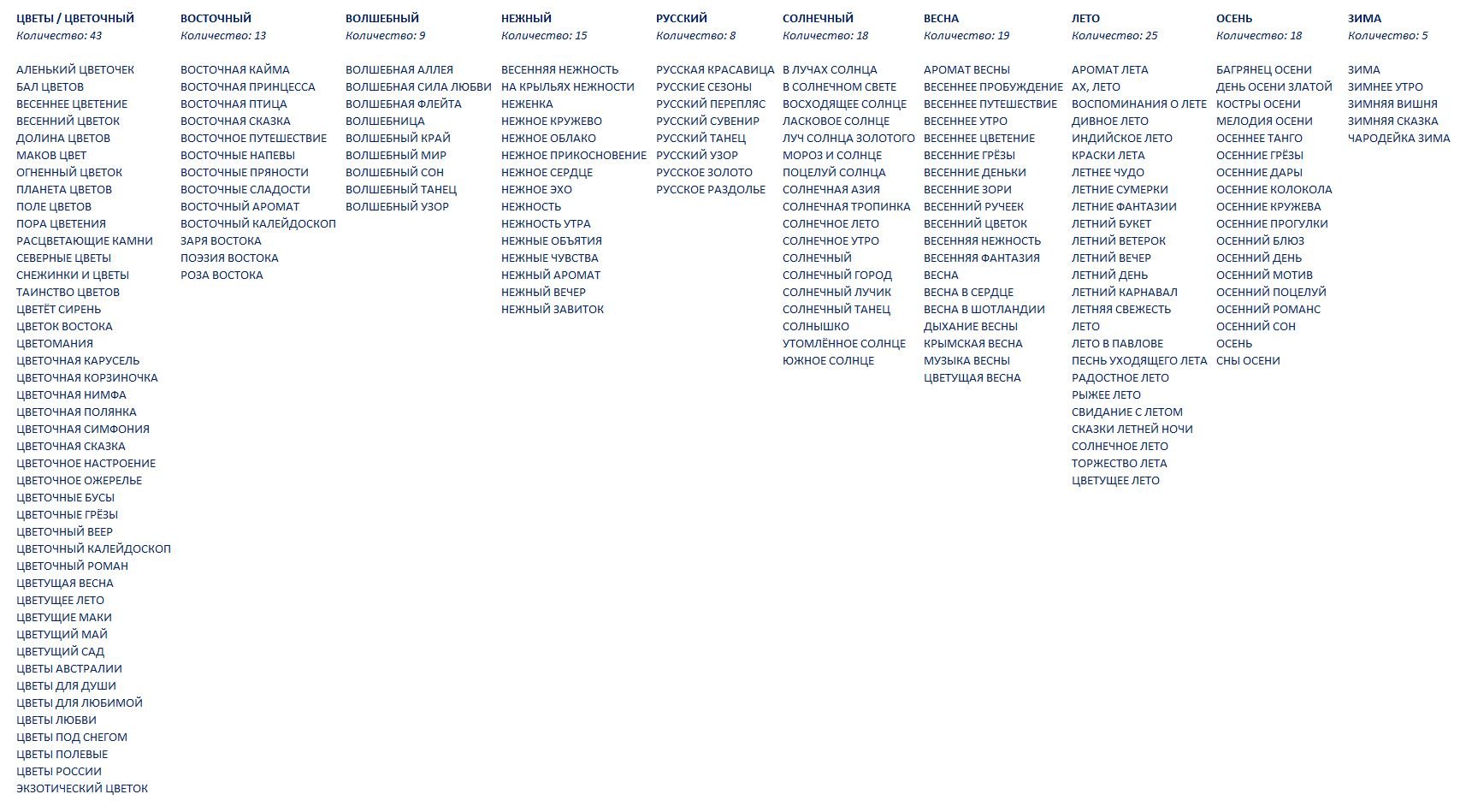 Значит, получается, что три весьма удачных названия, так или иначе, связаны с "безликими" и "не запоминающимися" - цветами, утром и русским.