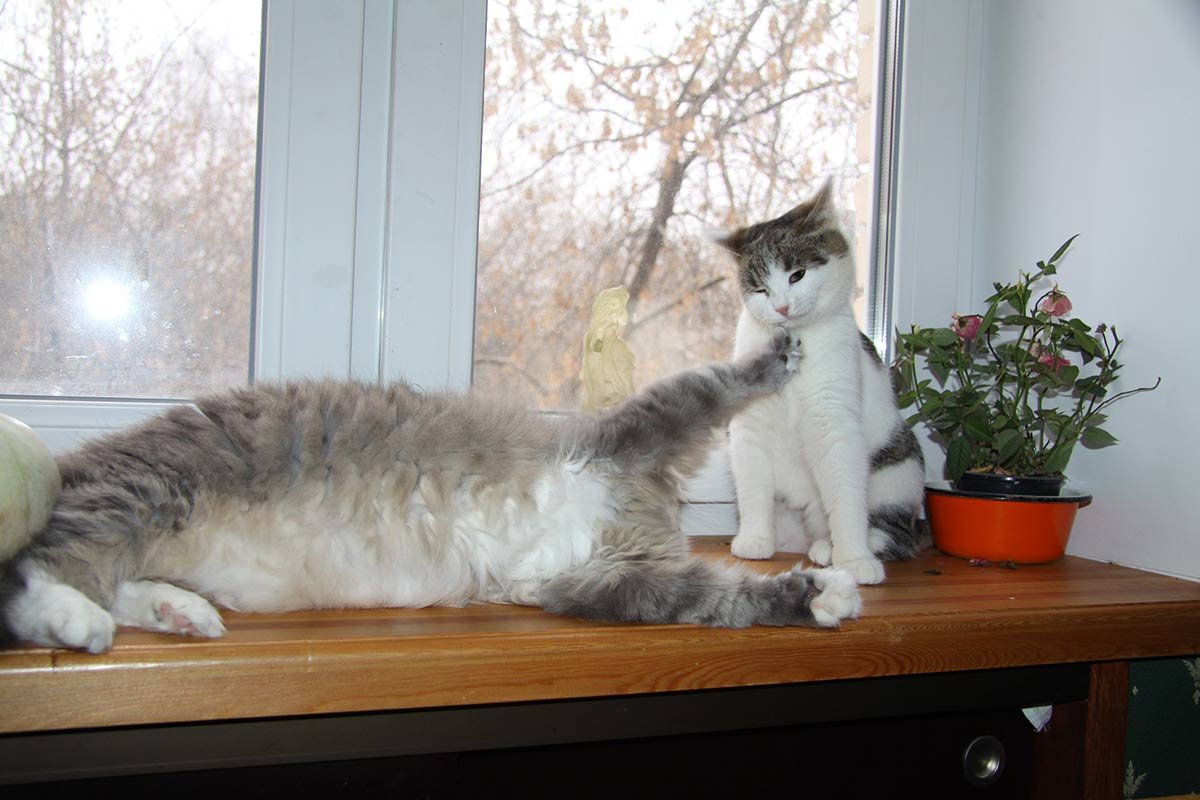 Oreshka , у нас с осени тоже стало двое, подобрали котенка. Тоже волновалась, как пойдет, как кормить, как с лотком. В итоге, Азька очень была обижена, от огорчения у нее вылезла шерсть над глазами, но сейчас уже начинает обрастать, обида еще до конца не прошла, на руки идет редко, гладить не очень разрешает. Кормежку приходится контролировать, Азя ест не спеша, а новая как пылесос моментально все засасывает и лезет в Азькину миску. Лоток один на двоих, это они не делят. Но стало весело, гонки и игры очень забавные.