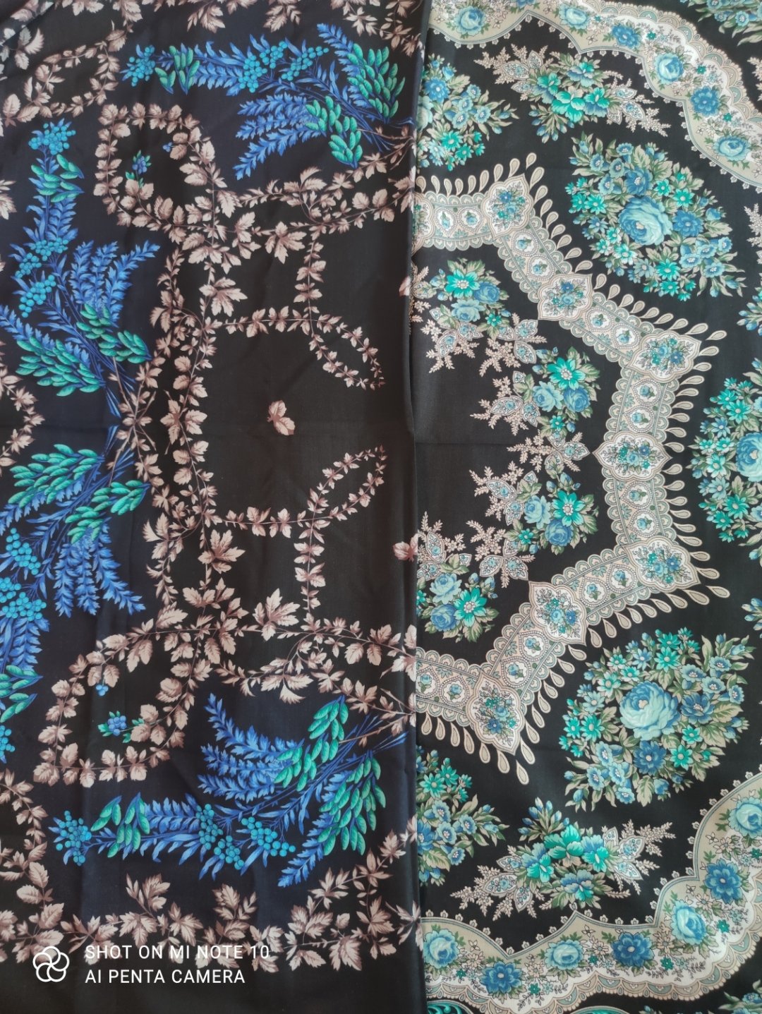 Да-да-да! Если "ОН", это платок, а не конкретно фон, то да, он не черный! Вернее так - в скрутке и в движении он не черный, а кружевной. Очень красиво работает этот мелкий, нежный рисунок, действительно кружево. И серенький мерцает серебром. И бирюзовый играет камушками-самоцветами. А вот когда статично разложить его на плоскости, то черный мне кажется слишком уж контрастрым. И наверное, это и хорошо. Потому что в движении и в скрутке этот черный фон поддерживает контрастом игру рисунка.