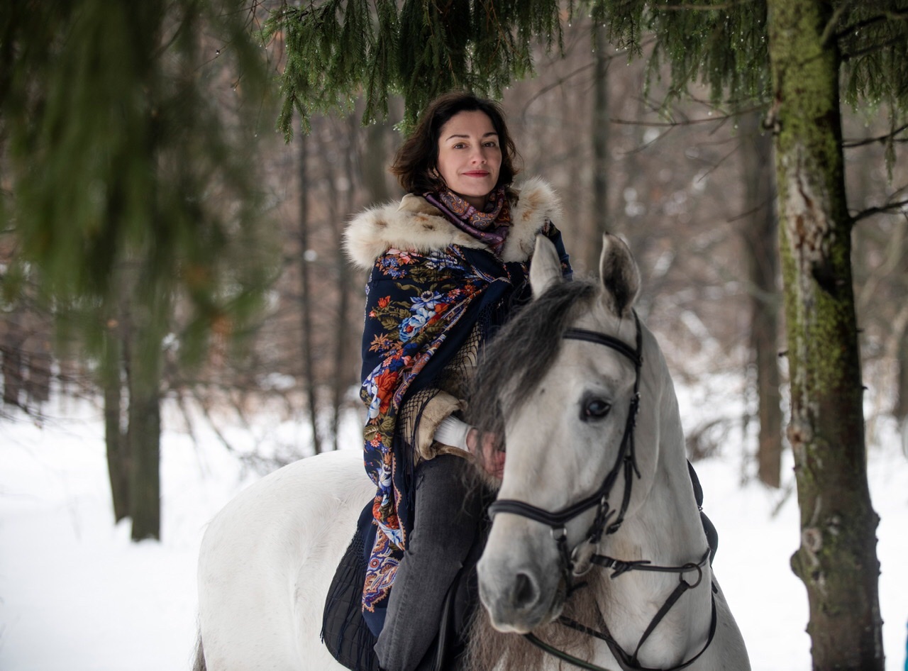 А пока у меня готова фотосессия с орловским рысаком Карнавалом и шалью Белые розы 14.