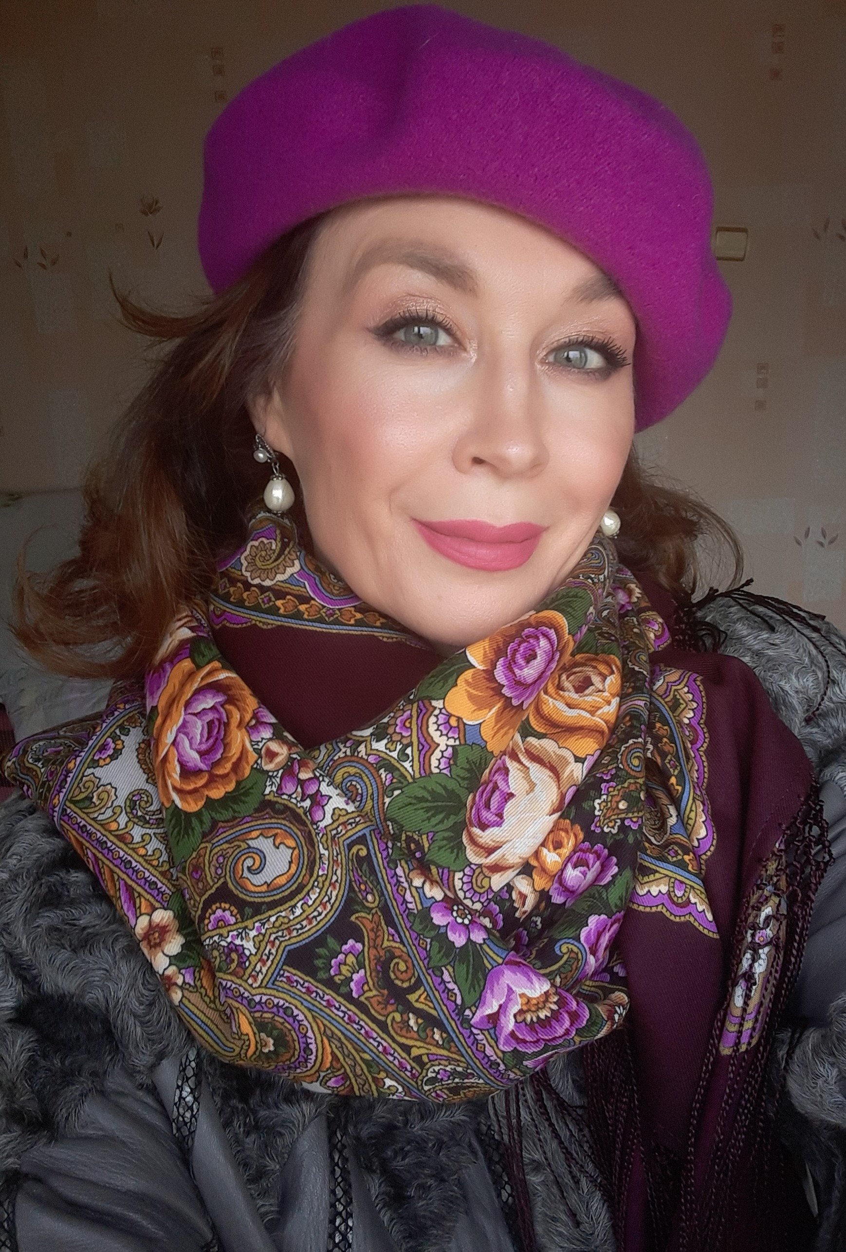 Зиночка,эта шаль"работает" как румяна и помада в одном флаконе) Красавица Зиночка в чудесной шали и дивной шубке,прелесть!)