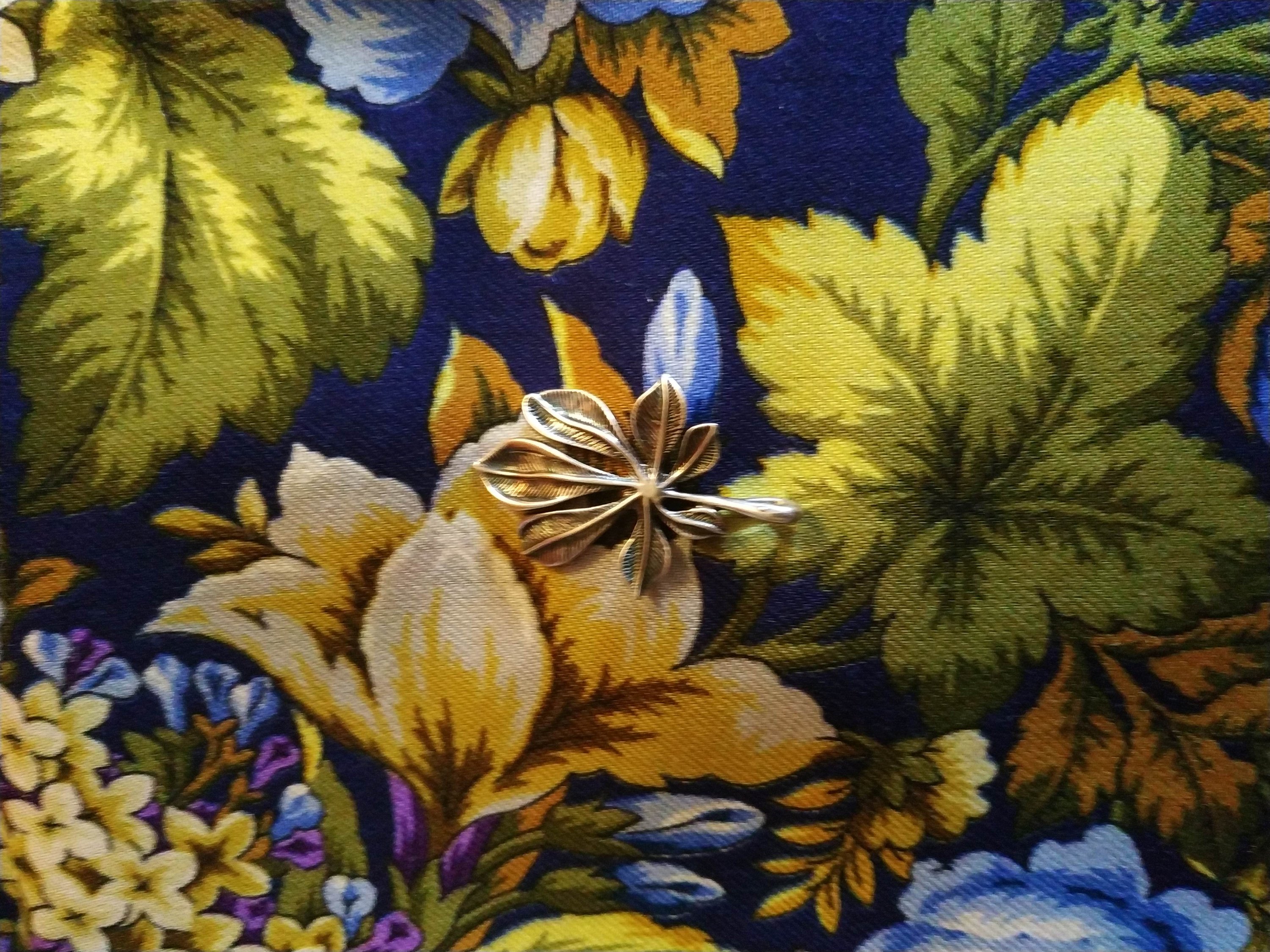 Дорогая Jea ^a , я посчитала вот этот элемент за лист каштана. Очень похож он на мою любимую брошку - каштановый листик. И если посмотреть на фотографии в интернете, то чаще всего они семипалые, но так же есть и шести и пяти, так что, мне тоже было бы приятно думать, что и на Полнолунии, и на Диве так же изображены каштановые листочки, хоть они там и пятипалые. А вообще все элементы в рисунках наших платочков могут быть настолько стилизованными, что наша с вами фантазия безгранична! Ведь правда? Я тоже обожаю каштаны во всех их проявлениях! И цветение, и плоды, и листочки - обожаю! У нас даже на даче прям на участке растет большой каштан-красавец! Мусорит, правда, он чрезвычайно, но за положительные эмоции, красоту и энергию, что мы от него получаем, ему прощается всё!